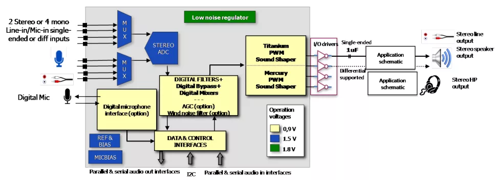 Up to 105 dB of SNR, 24-bit stereo CODEC with PDM to PWM transmodulator DAC and embedded regulator is a Audio Codec IP core from Dolphin Semiconductor listed on Semi IP Hub. It is listed with support for tsmc Silicon Proven.