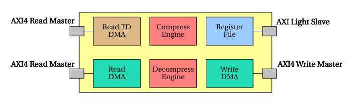 This is a high performance, small footprint ZLIB compatible IP Core. It features 3 DMA engines, AXI interconnect and separate clocks for AXI interfaces and compression/decompression engines.