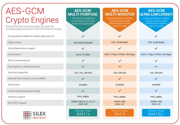 All 3 AES-GCM crypto engine variants from Silex Insight accommodate the different market needs;