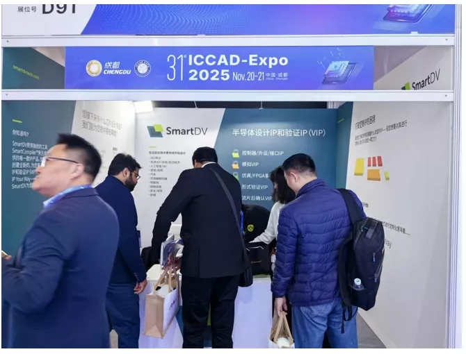 2025年11月20日-21日,“成渝集成电路2025年度产业发展论坛暨第三十一届集成电路设计业展览会(ICCAD-Expo 2025)”在成都·中国西部国际博览城圆满落幕。这场汇聚2000余家国内外集成电路企业、300余家产业链上下游展商,逾6000位行业有关主管领导、知名专家与业界代表等嘉宾的行业盛会,成为洞察产业趋势、共探创新路径的核心平台。全球领先的半导体设计IP与验证IP提供商SmartDV Technologies™携定制化解决方案、车规级IP产品及生态化服务重磅参展,并在专题论坛发表主旨演讲,为中国集成电路产业的差异化发展与生态构建注入强劲动力。