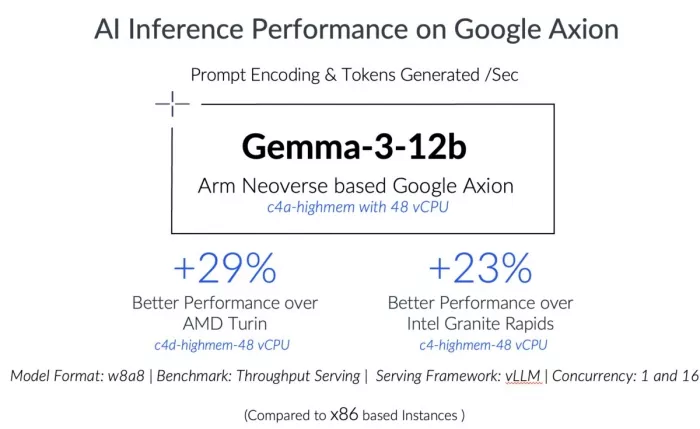 C4A VMs, powered by Arm Neoverse V2 based Axion CPUs, are optimized to complement pure-play accelerators in handling these parallel, latency-sensitive workloads efficiently by enabling high-throughput AI inference on general-purpose compute.