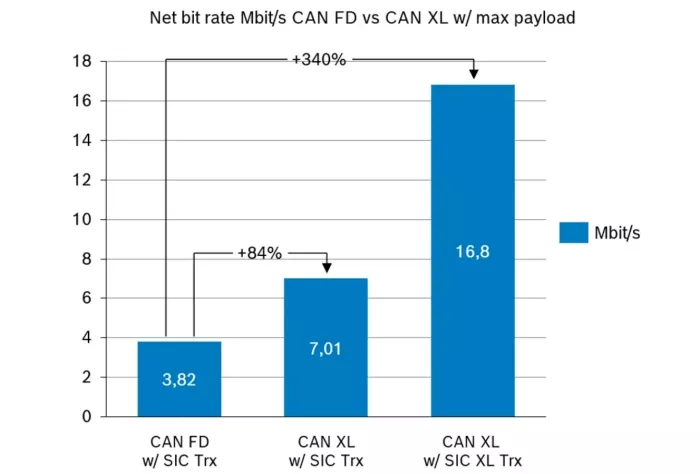 - Cost efficiency: Compared to Automotive Ethernet, which also offers high bandwidth, CAN XL often represents a more economical solution, especially in applications with no need for the complexity and protocol overhead of Ethernet.