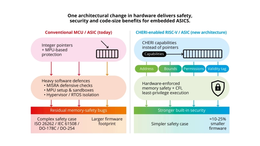 Hardware-enforced memory safety strengthens security, simplifies functional safety and even reduces firmware size.