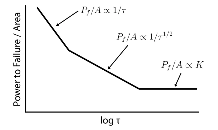 Failure of the device depending on area and pulse width has been discussed in multiple articles of IC device characterization using different pulse types. In the fig. 3 we have the Wunsch-Bell curve, which describes the power to failure over area vs. log pulse width. In 3 distinct phases: phase 1 , phase 2 and phase 3 . With the data and curve we can look at the design, scaling and predictions of devices for the stress cases we are investigation.