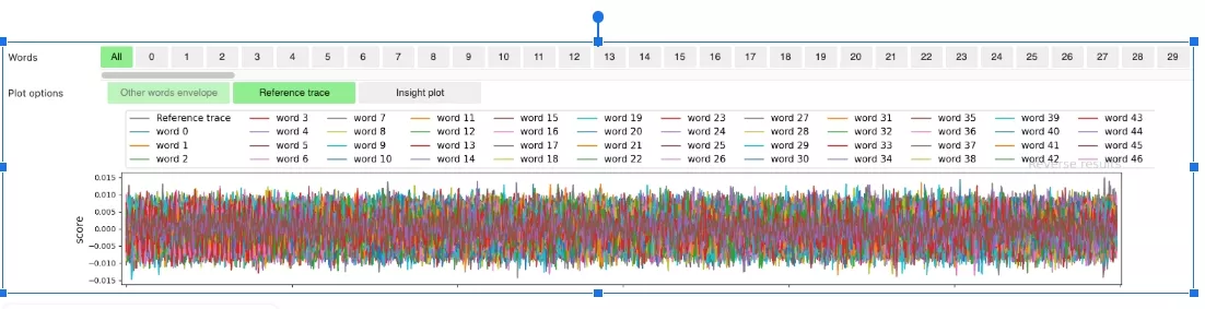 By construction, the protected implementation internally generates the random values used for the masks. The reverse analysis is made impossible so that we rely only on attacks to validate the resistance of the protected implementation. Several attempts were performed to find first-order leakage despite the presence of countermeasures – none of them leading to any private key coefficient recovery. As illustrated below, with the protected implementation, leakage characterizations do not highlight any point of interest.