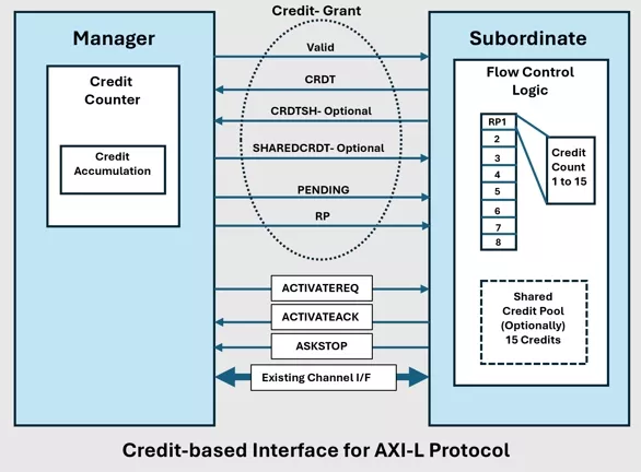 Historically, all versions of the AXI protocol have employed the VALID/READY handshake mechanism across all channels to manage data transfer. However, in AXI-L, AMBA has introduced a new credit-based transport mechanism, replacing the traditional VALID/READY handshake. This marks a significant shift in the protocol's transport methodology.