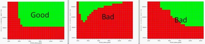 Fig. 2: Voltage search plots. Determining an accurate VDDmin using this method often requires an impractically long time and high test cost, leading to painful compromises.