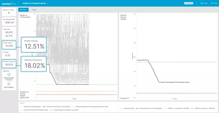 Fig. 5: AVS Pro, visualized here, enables 12.51% power saving through safer voltage scaling, leading to 18% projected lifetime extension.