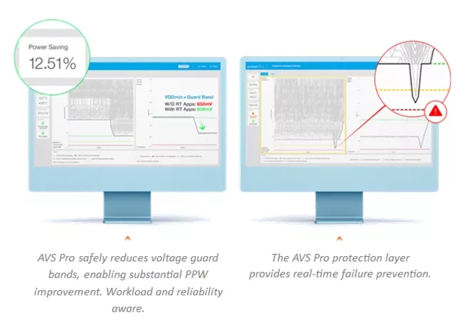 - AVS Pro™: Workload and reliability aware, real-time power reduction - delivering up to 14% lower power with no performance loss, while extending the device RUL by ~20%. To learn more, read the white paper here.