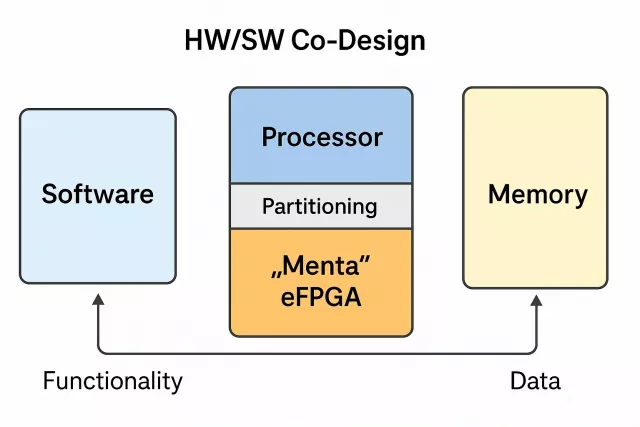 This is where Hardware-Software Co-Design (HW/SW Co-Design) comes in — a methodology that develops hardware and software concurrently and collaboratively to achieve optimal performance, power efficiency, and adaptability. Rather than treating hardware and software as isolated domains, HW/SW Co-Design recognizes them as complementary layers of a unified system, where functionality can be intelligently partitioned between software running on processors and hardware implemented in reprogrammable logic, such as Menta’s 100% standard-cell eFPGA.