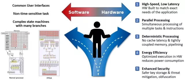 - Hardware (HW): Ideal for performance, determinism, and parallel data processing.
