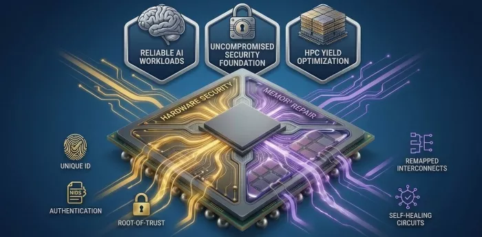 A physical unclonable function-based hardware root-of-trust, PUFrt, jointly developed by eMemory and PUFsecurity, was designed precisely for this role: a fully integrated implementation of the Caliptra 2.0 open standard that simultaneously manages cross-die memory repair and hardware root of trust across the full platform.