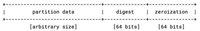 where the last 64 bits can be all set to 1 (a blown fuse) to indicate that the partition has been zeroized.