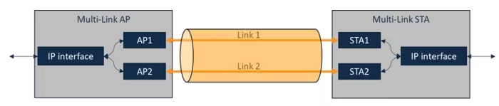 At the low end of this range is a single link option, called multi-link single radio (MLSR), which emulates multi-link through time-sharing. Needing only one 1×1 radio this option is very cost effective and still can show substantial performance improvement over Wi-Fi 6 thanks to faster switch. Next up is a dual-link MLMR, each link offering a 1×1 connection and generally supporting concurrent communication on each link for higher throughput with low latency.