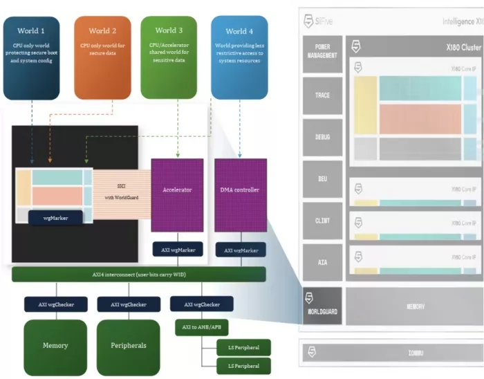 WorldGuard, a standard that SiFive invented and subsequently donated to RISC-V International to enable the RISC-V ecosystem to build on consistent security implementations, creates isolated worlds and allocates system resources to each of these ‘worlds’. Unlike incumbent architectures, the system user can configure systems to have more than simply trusted and untrusted areas.