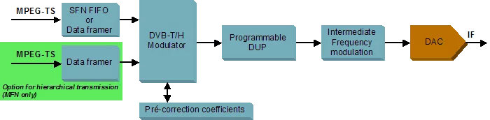 - The MVD DVB-T/H modulator may be used in applications related to terrestrial transmission, typically at the head end.