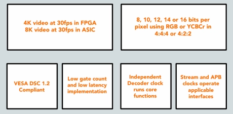 - Compliant with VESA DSC 1.2b, backward compatible with DSC 1.1