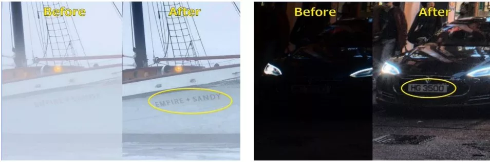 “LucidEye” improves the visibility of unclear images such as those deteriorated due to weather conditions (snow, haze, or fog), and dark images due to backlight or insufficient illumination.