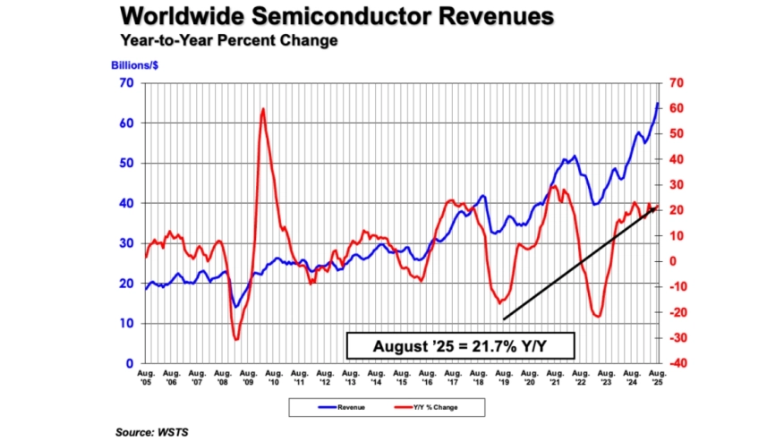 Global Semiconductor Sales Increase 21.7% Year-to-Year in August 2025-10-06 05:57:00 Commentary / Analysis