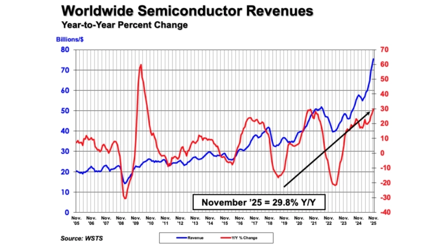 Global Semiconductor Sales Increase 29.8% Year-to-Year in November 2026-01-09 06:37:49 Commentary / Analysis