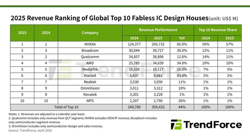 AI Compute Demand Drives 44% YoY Growth for Top 10 Global Fabless IC Firms in 2025 2026-04-03 08:06:00
