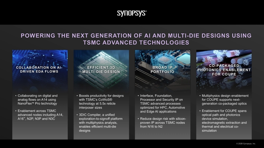 Synopsys Partners with TSMC to Power Next-Generation AI Systems with Silicon Proven IP and Certified EDA Flows 2026-04-22 19:18:00 Strategic Partnerships