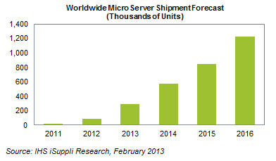 February 6, 2013 -- Driven by booming demand for new data center services for mobile platforms and cloud computing, shipments of micro servers are expected to more than triple this year, according to an IHS iSuppli Compute Platforms Topical Report from information and analytics provider IHS (NYSE: IHS).