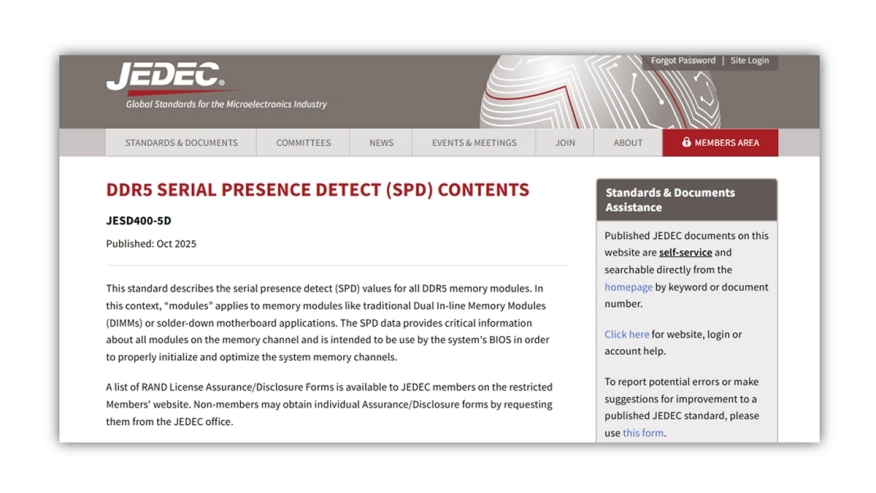 JEDEC Announces Annual Update of DDR5 Serial Presence Detect (SPD) Contents Standard 2025-10-14 14:40:00 Standard