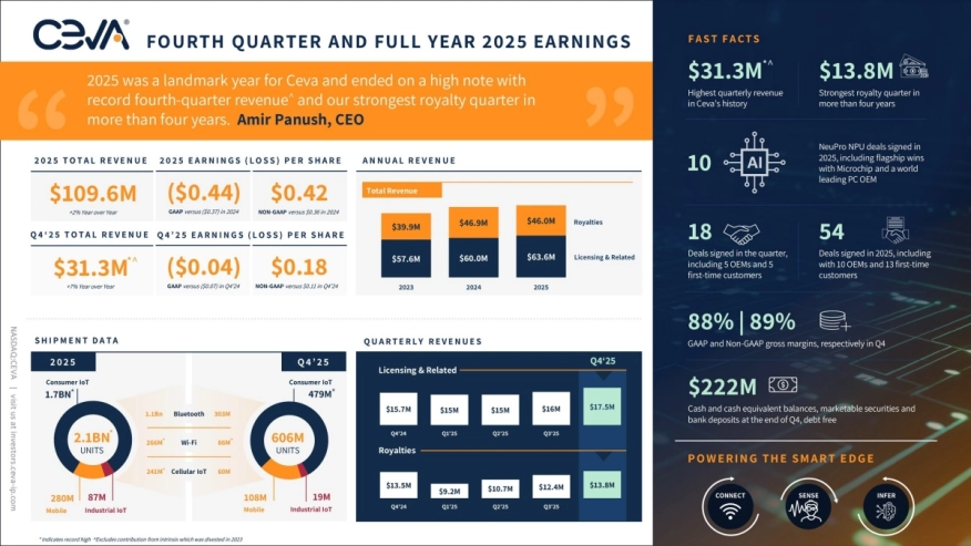 Ceva, Inc. Announces Fourth Quarter and Full Year 2025 Financial Results 2026-02-17 13:11:13 Financials