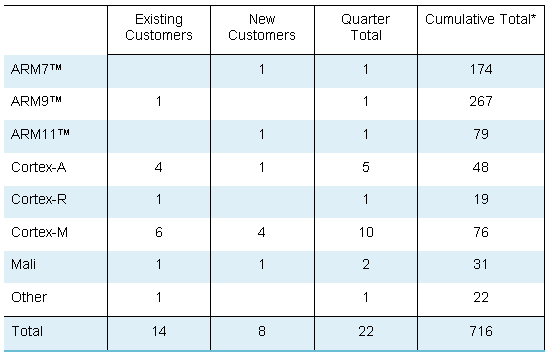 - 18 processor licenses signed for a broad range of applications including advanced processors for use in new markets such as network infrastructure and sensors.