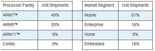 - Growth in mobile applications - ARM opportunity increasing with mobile phones, smart phones and now mobile computers growing strongly.