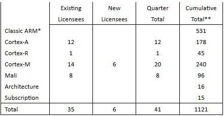 41 processor licences were signed in Q2 2014, higher than ARM's normal licensing run rate and reflecting the strong demand for ARM's latest technology.