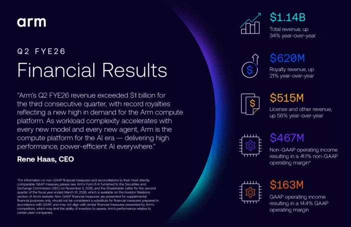 Arm Q2 FYE26 revenue surpasses $1 billion for third consecutive quarter