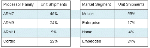 The Cortex processor family now represents 22% of all units shipped, up from 19% in the prior quarter. This sequential increase is primarily due to shipments of Cortex-M series processors in microcontrollers and smartcards, and an increase in Cortex-A series processor shipments driven by high-end smartphones and mobile computers adopting smarter applications processors. Cortex-A series processors now represent 5% of all shipments, up from 2% in Q3 2010.