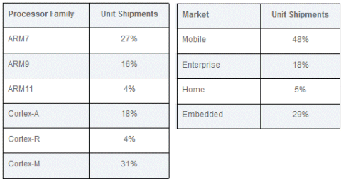 - Continued penetration of processors containing both Cortex-A and Mali graphics processors