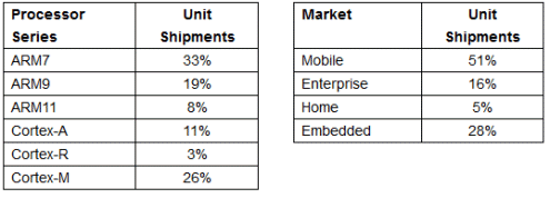 - Growth in shipments of chips based on ARM processor technology