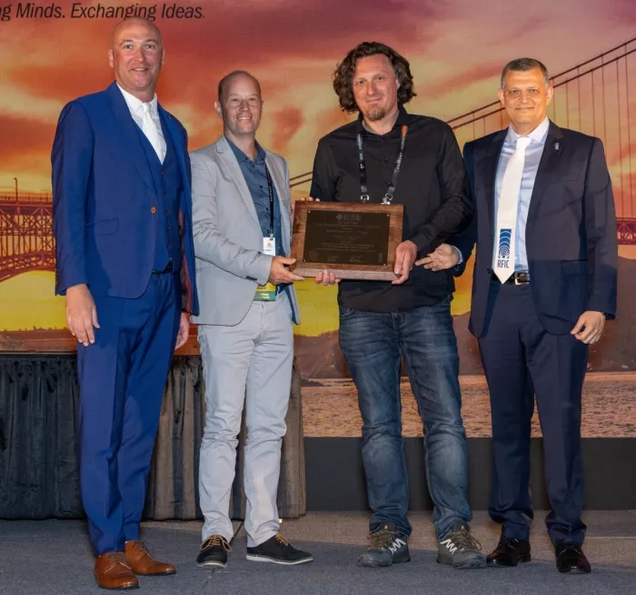 From left to right: François Rivet (IMS Bordeaux, RFIC 2025 General Chair), Alexandre Giry (CEA-Leti), Pascal Reynier (CEA-Leti), Mohyee Mikhemar (Broadcom, RFIC 2025 TPC Chair)