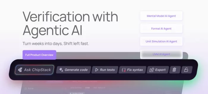 Founded by technologists with deep expertise in both AI and semiconductor design, ChipStack’s generative AI-driven platform helps accelerate design and verification workflows through deep design understanding, intelligent test planning, test generation, and AI-assisted debugging.
