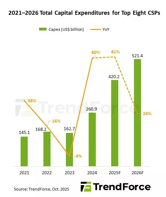 - CSP CapEx to Soar Past US$520 Billion in 2026, Driven by GPU Procurement and ASIC Development