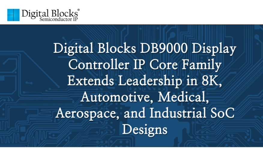 - Digital Blocks DB9000 Display Controller IP Core Family Extends Leadership in 8K, Automotive, Medical, Aerospace, and Industrial SoC Designs