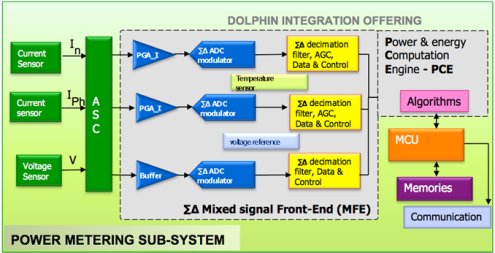 Grenoble, France -- April 15, 2013 -- Dolphin Integration rolls out for Smart Grid applications a complete subsystem: the first Silicon IP combining a Mixed-signal Front End (MFE) with a Power and energy Computation Engine (PCE).