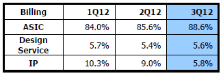 Contributed by the skyrocketing market demand in quarter three, the revenue of ASIC MP (mass production) is much higher than the original guidance, reaching another quarterly record-high result. Nevertheless, the relatively higher growth percentage of ASIC MP led to the decline of corporate margin, coming to 38%. In profit wise, the increase of RD expense is caused by advancing IP development schedule from quarter four to this quarter, driven by the more aggressive project planning in Communication sector.