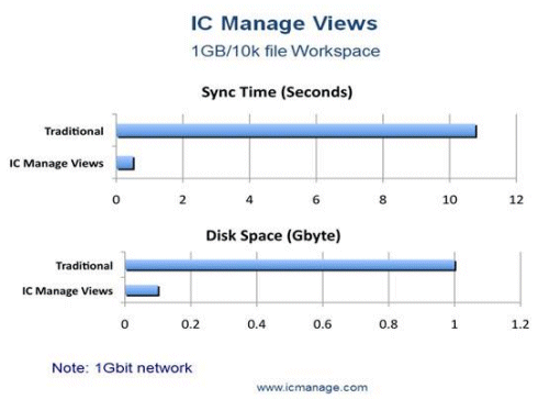 LOS GATOS, Calif., May 15, 2012 – IC Manage, Inc. today introduced its IC Manage Views™ storage acceleration software - a version aware, virtual file system that presents complete workspace views, while only transferring data on demand to a local file cache. IC Manage Views removes network transfer bottlenecks to accelerate Electronic Design Automation (EDA) tool performance, achieve Zero-Time Sync™ (ZTS) for workspaces, and reduce storage utilization. IC Manage Views is 100% compatible with all storage technologies and works at both local and remote sites.