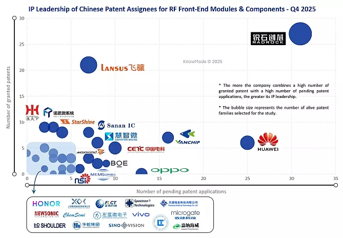Figure 1: IP leadership of Chinese patent assignees for RF front-end modules & components in Q4 2025.