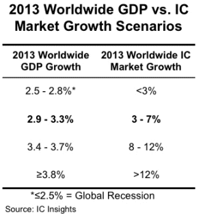 Unfortunately, with little good news coming out of Europe in early 2013 and the full impact of the U.S. sequester cuts still looming, IC Insights still believes that there continues to be more downside risk to its worldwide GDP growth forecast for this year than upside potential.