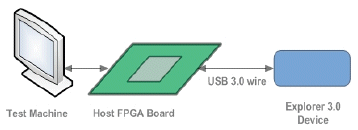 The Explorer 3.0 Emulation Suite consists of the Explorer Device along with a software API to control the Explorer Device. A suite of pre-written tests run on a test machine that has an XHCI driver installed. The suite provides a wide range of pre-written tests that cover Bulk and Isochronous transfers with configurations that cover various aspects such as link and protocol error injection, bursting of data, flow control cases, STALL cases, low power cases, concurrent operation of endpoints, Bulk stream protocol etc. These tests can run with production software (drivers, firmware and operating system) and hence provide comprehensive testing and high degree of confidence over your design.