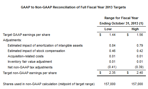 The following tables reconcile the specific items excluded from GAAP in the calculation of target non-GAAP operating results for the periods indicated below.