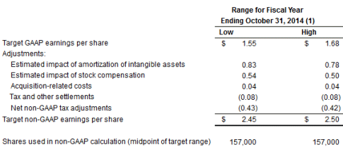 GAAP to Non-GAAP Reconciliation of Third Quarter Fiscal Year 2014 Targets