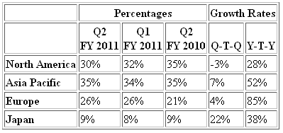"New Product sales were led by particularly strong growth from the Virtex(TM)-6 and Spartan(TM)-6 FPGA families," said Moshe Gavrielov, Xilinx President and Chief Executive Officer. "Combined sales from these families more than doubled sequentially in the September quarter driven by strong new customer adoption in wide ranging applications such as 3D digital video displays, high performance computing and wireless infrastructure."