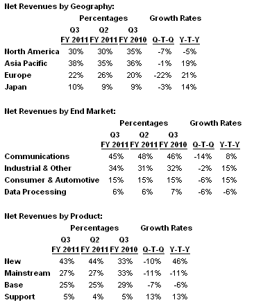 The sales decline during the quarter was driven primarily by weaker than anticipated wireless communications sales to customers in Europe and North America.
